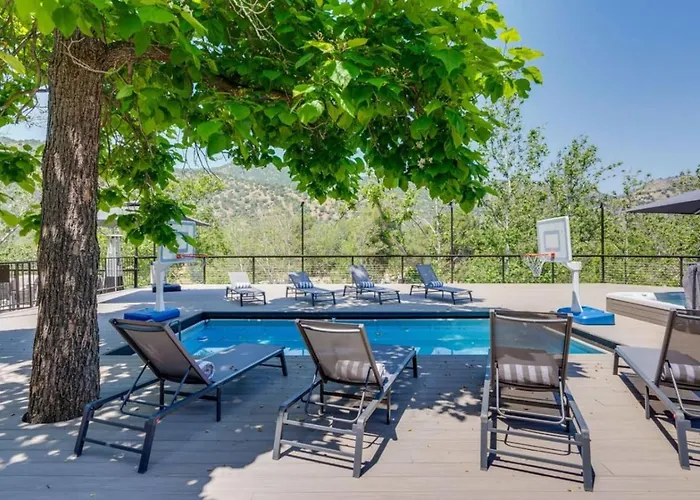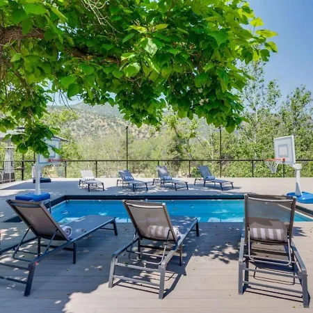 Deze gesitueerde in Three Rivers Kaweah River Cabin - Pool, Hot Tub, Movie Projector Three Rivers bevindt zich op 25 minuten lopen van Sequoia Parks Conservancy en beschikt over een patio met uitzicht op de berg.